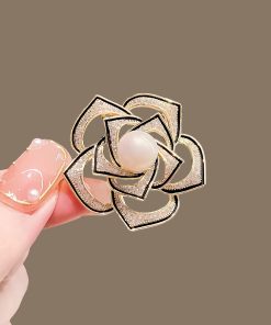 Vintage Camellia Pin for Women Gold Plating Rhinestone Brooch 05