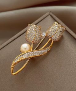 Vintage Camellia Pin for Women Gold Plating Rhinestone Brooch 06