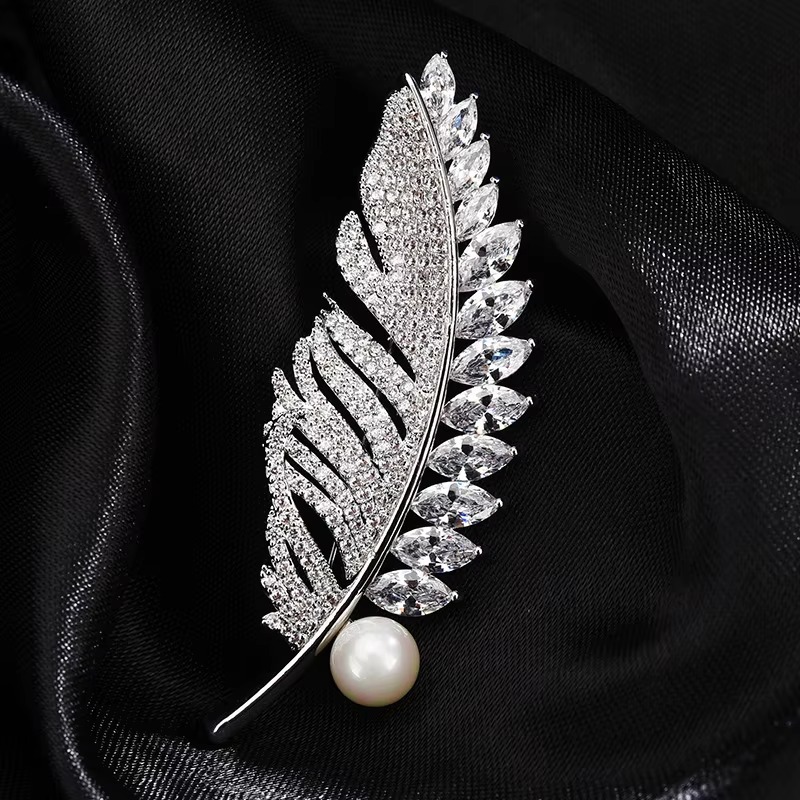 Leaf Brooch Women’s Suit Inlaid with Zircon Accessory Pin Jewelry 03