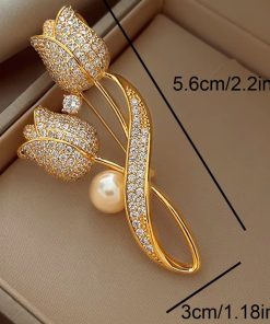 Vintage Camellia Pin for Women Gold Plating Rhinestone Brooch 05